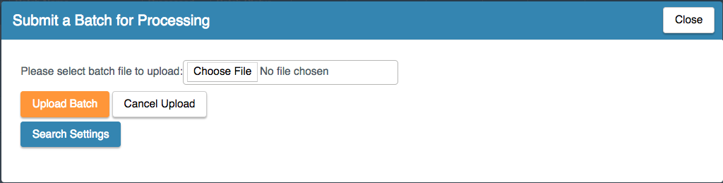 Select the file you want to upload. Then if you don't want to change any search settings you can select "Upload Batch" and file will begin to process.